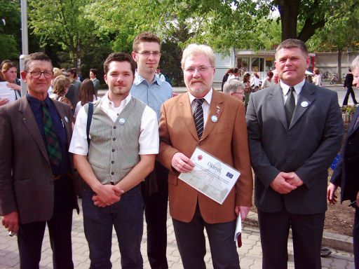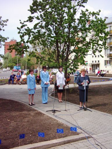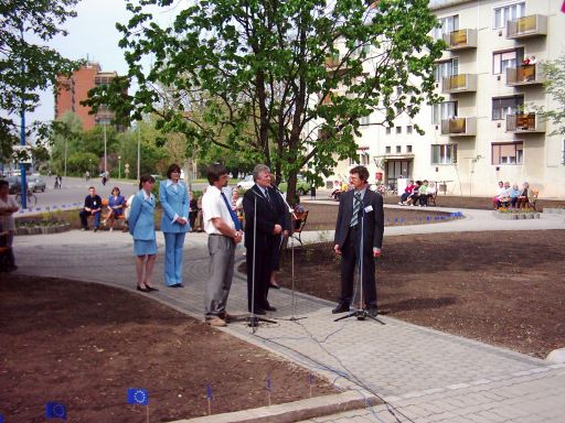 Az ünnepséget iskolánk igazgatója, Dr. Csikai Miklósné köszöntője nyitotta, majd Szentes város alpolgármestere, Szűcs Lajos beszélt arról, milyen fontos változásokat hoz életünkbe az Európai Unióhoz való csatlakozás, továbbá hogy milyen jelképeket hordoz magában a most átadásra kerülő park . A parkban elhelyezett emlékkövet együtt leplezték le a német Sankt Augustin-i és finn Kaarinai delegáció képviselői és Szentes alpolgármestere.