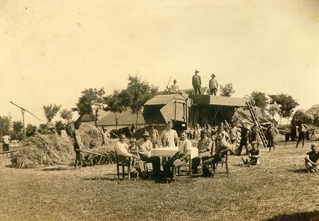 Ebéd az 1930-as években cséplõ, virilis gazda tanyáján (37. kép)