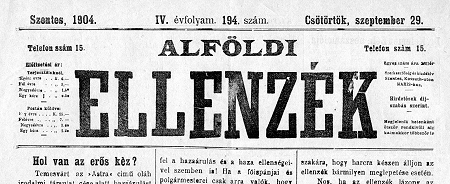 Az Alföldi Ellenzék c. újság fejléce