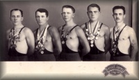 | A fiatal birkózó, Szlapák János érmeivel | Az 1960-as évek birkózói | A fotón szereplő sportolók névsora | |||||||||||||||||||||||||||||
