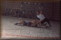Birkózóverseny a Klauzál Gábor Általános Iskola tornatermében a 70-es évek végén |