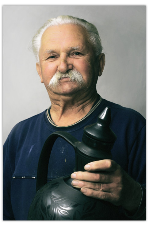 Kizárólag feketekerámia készítésével foglalkozik, munkáit csiszolt növényi mintákkal díszíti. Alkotásai között megtaláljuk a kantákat, a korsókat, a lisztes bödönöket, azokat az edényféleségeket, amelyeket inasévei alatt csinált. A csiszolt díszítésnél a Drahos István rajztanár és grafikus művész által gyűjtött mintákat használja fel. Megrendelésre is dolgozik, előzetes egyeztetés alapján kizárólag feketekerámia készítését vállalja. Bemutató