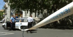 Kossuth téri fák árnyékában, miközben a rendőrség