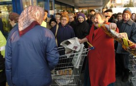 termékekre vadászó vásárlók. Kevés fiatal, sok nyugdíjas. A német