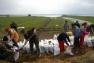 a zsákokkal, melyeket a csatárláncban álló emberek adogatnak