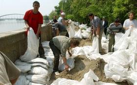 lakói is. Ürítik ki a homokzsákokat a szegedi partfal mentén,