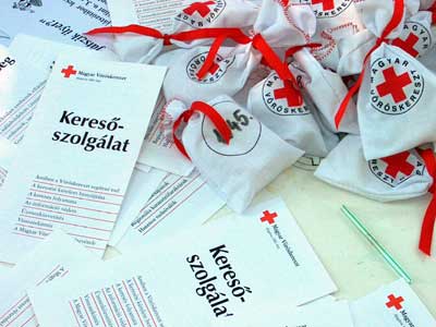 A Vöröskereszt zsákbamacska ajándékokat osztogatott az érdeklődőknek.