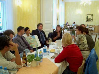 A látogatás végén egy uzsonna várta őket a Páterházban, amit polgármester úr is megtisztelt. A elkészült cikkek különböző stílusú újságoknak készülnek, mert figyelték a sportot, turisztikai látványosságot, gasztronómiai szempontokat, gazdasági és politikai viszonyokat. Szentes, 2001. 09. 08.