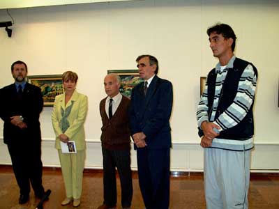 A Városi Galériában nyílt meg Dragan Martinovic és Stojan Duric (a kép két szélén állnak) Topolyai festőművészek kiállítása. A kiállítást Vasilije Tapuskovic kultuszminiszter-helyettes nyitotta meg. Dragan Martinovic szürrealista realizmus stílusban fest melyet a precíz rajz és a valótlannak tűnő légkör övez. Stojan Duric képeit a színgazdagság jellemzi. A kiállítás szeptember 6-29-ig látogatható keddtől péntekig 10-13 és 15-18 óráig, szombaton 9-13 óráig.