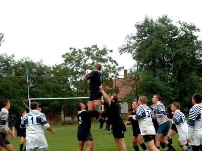 Hazai pályán fogadta vendégül a szentesi rögbi csapat a Kecskemét megfiatalított csapatát az idény első bajnoki mérkőzésén. Első pillanatban durvának ható sport a rögbi, de a két csapat között nem akkora az ellentét, mint ahogy az látszik. Egy rossz esés következtében, nemcsak a társak, de az ellenfél is igyekezett segíteni a sérültnek. A Kecskemétiek kitartóan védekeztek, de ennek ellenére 82:7 arányában győzedelmeskedtek fiaink. Szentes, 2001. 09. 10.