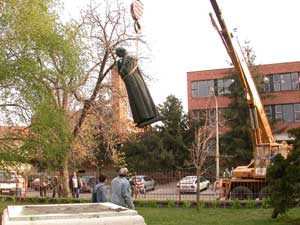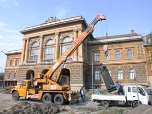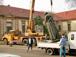 A Horváth Mihály Gimnázium ablakai megteltek érdeklődő és szomorkodó szempárokkal, amikor a daru kiemelte féltve őrzött és tisztelt szobrukat. Többen hangos kiáltozással adták ki magukból véleményüket, de ne felejtsük el, hogy eredetileg a szobor a volt Megyeháza előtt állt.