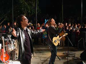 A színpadon Hevesi Imre vezetésével fellépett a Hevesi Happy Band, majd teli torokból énekelte a közönség, hogy "Nem vagy és James, és nem vagyok Bond" a BON-BON együttessel. Az estét a la Bomba zenekar zárta. Szentes, 2002. 05. 02.