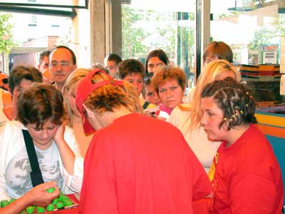 Az egyik nagy üdítőital konszern által meghirdetett kupak gyűjtési akciójának a beváltó helye a Kossuth utcán található Központi ABC. Pénteken (2002. július 26.) már de. 9 órától várakoztak kupakkal teli nylon zacskókkal az emberek, hogy a kupakokból kirakott 100 pontért "megvásárolják" a felfújható fotelt. A várakozó tömeg először az ABC működését hiúsította meg, mert a bejáratot elállták a várakozók, majd a kialakult hangulat miatt tessékeltek ki mindenkit az üzletből. A korai érkezők között egy-két ütés váltás is történt, de ekkor jött a meglepetés. A várva várt fotelekből nem volt egyetlen egy darab sem, hanem egy kupont kaptak a fotelra várakozók, ami igazolta, hogy 100 pontnyi kupakot leadtak, és POSTA-i úton mindenki megkapja a várva várt fotelt. Mennyi kólát kell meginni a fotelért ? 66,5 liter A fotelek ára számításunk szerint 7047.- forint!!! Szentes, 2002. 07. 26. |
