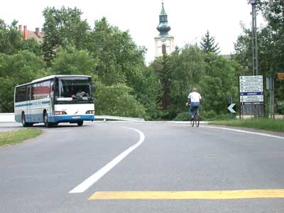 Először is szeretnénk leszögezni, hogy nem úthibáról van szó, hanem olyan figyelemfelkeltő (úgynevezett) "rázató" lett beépítve a Csongrádi út végén, amely felhívja a figyelmét járművezetőknek, hogy sebességet kell csökkenteni. Ebben a kanyarulatban már több baleset történt, mert ha valaki kiegyenesíti az utat, akkor könnyem megfürödve találhatja magát, mert az út folytatásában ott található Szentes folyócskája a Kurca. Szentes, 2002. 07. 09. |