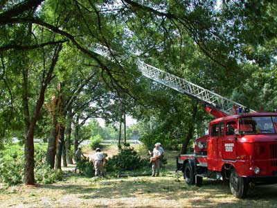 2002. július 14-én egy délről érkező vihar "villámlátogatást" tett Szentesen, aminek következtében több fa és közintézmény is megsínylette a hívatlan vendég látogatását. A Dózsa ház melletti fa szerencsétlenségére "lefekvése" előtt egy nagyot nyújtózott, de hirtelen megrázó "élményben" volt része, mert egy villámcsapás egyből kettéhasította. A városban több fa hasonlóképpen pórul járt, de a városközpontot is több villámcsapás sújtotta. Több helyen helyen, az elkövetkező napokban nem kell a TV műsorral törődniük, mert a villámcsapás elintézte a TV készülékeket. Így járt egy-két számítógépes hálózattovábbító "kütyü" is, de egyes helyeken riasztóberendezések tönkre mentek. A tűzoltók segédkeztek július 15.-én a veszélyes széthasadt fák kivágásában.