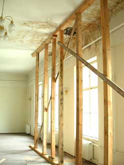 Az elmúlt hetekben SAJNOS a tetőszerkezet hibája miatt több szobában és folyosón a mennyezeti rész "aládúcolásával" kell megakadályozni az épület jelenlegi állagának megmaradását, amíg nem sikerül pénzt szerezni a teljes felújításhoz.