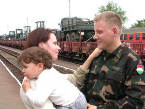 A külhoni szolgálat szeptember közepéig tart, amire a hivatásos és szerződéses katonák önként jelentkeztek. Az augusztus 10-ei búcsú mindenkinek nehéz volt, mert a szerető család távolléte mindenkit próbára tesz. Szentes, 2002. 08. 12. |