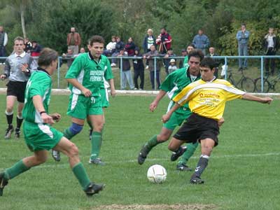 Nana Mihály (a fenti képen sárgában látható) mesterhármasával a végeredmény 7:0 a hazaiak javára! Szentes, 2002. 09. 30. |