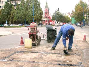 A napokban fejeződött be a Kossuth-Petőfi-Ady E. utca kereszteződésében található forgalomirányító lámpa korszerűsítése. Ugyan eddig is volt detektor az útburkolatban, de az aszfalt bordásodása miatt elszakadtak a detektorvezetékek. Az új detektorok beépítése mellett kiegészítették a gyalogosforgalmat irányító lámpákat egy kürttel, amely a csökkent látóknak és a bámészkodóknak segít, mert a szabad utat dudálással jelzi. Szentes, 2002. 10. 11. |