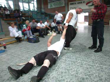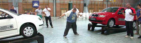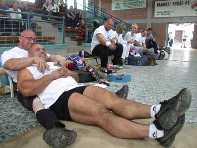 A fenti "aktatáska" 220 kg, amit minél többször kellett felemelni láb között. Egy-egy versenyszámban emberfeletti teljesítményeket láthattunk, így a feladat végrehajtása után a talpra állás is nehézségekbe ütközött, de ilyenkor a társakra számíthattak a versenyzők, akik "neitthaljmeghamemodébbhúzlak" szöveggel egyből lelket öntöttek a kimerült versenyzőbe.