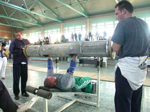 Az erő bajnokai megmutatták, hogy ők hogyan sétálgatnak "kofferral", ami mellesleg összsúlyát tekintve 240 kg. A második versenyszámban 45 fokos fekve nyomó padon a 110 kg-os rönköt több mint 20-szor nyomták ki fejfölé a legerősebbek.