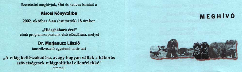 Kedves Olvasónk! A Szentesi Mozaik 14. hírlevele ezen a web-oldalon érhető el teljes részletességgel. Az egyes tudósítások, kiegészítő infók a színes és/vagy aláhúzott linkekre kattintva egységesen új böngésző ablakban nyílnak meg a könnyebb navigálás kedvéért - áttekintésük után ezeket az ablakokat célszerű bezárni. Régebbi hírleveleink gyors áttekintése a Hírlevél-archívum segítségével történik. A tovább folytatódó "Szentesi Alkotók az Interneten" sorozatunk régebbi darabjai szintén egy külön Alkotók-archívumból lesznek elérhetők. A Hírlevelekben próbálunk az egyes kiemelt tudósítások mellé minél több kapcsolódó információt is felkínálni az Interneten fellelhető anyagokból - tervezzük ezen szemle-gyűjtemények önálló közzétételét is. A legfrissebb tudósításaink nem kerülhetnek bele maradéktalanul a Hírlevélbe, ezért érdemes meglátogatni a Mozaik Friss oldalát is! Ha szeretné, hogy más cím(ek)re is eljusson a hírlevelünk, küldje el azt nekünk a mozaik@szentesinfo.hu címre egy Megrendelés tárgyú e-mail-ben. Ha a hírlevélre nem tartana igényt, az elnézését kérjük - ez esetben legyen szíves egy Lemondás tárgyú levelet írni a fenti címre! Üdvözlettel: Vidovics Ferenc főszerkesztő, Tímár Ferenc kiadó A megjelenést támogatja: TEAM Számítástechnika, Szentes Csak szabályosan! - 10.11. A Koszta József Általános Iskolában rendezték meg a Kisiskolások Közlekedési Versenyét az általános iskolák 3-4 osztályos tanulói részére. A rendezvényre közel 40 tanuló nevezett a szentesi és városkörnyéki iskolákból. A tudósításban a részletes eredmények is olvashatók... Kapcsolódó oldalak: Kézi tábor a Kosztában - VF., Szentesi Mozaik - 06.24-29. "Gyermekvirág" - ballagásra - VF., tudósítás a Szentesi Mozaikban - 06.16. A Koszta József Általános Iskola bemutatkozása - Szentesi Mozaik - 2002.02. Tovább bővülnek az üdülőházak - 10.11. Sikeres pályázat nyomán indulhat a strandfürdő területén az üdülőházak bővítésének II. üteme, melynek során újabb 4 db 2x2 ágyas lak épül fel... Kapcsolódó hír: Gazdagodik, megszépül a strand - Szentesi Élet - 2001.08.10. Átalakul a strand! - VF., Szentesi Mozaik - Fürdők - 2001.08.07. Detektor az aszfaltban! - 10.10. A napokban fejeződött be a Kossuth-téri forgalomirányító lámpa korszerűsítése, melynek során az új detektorvezetékek beépítése mellett a csökkent látókat segítő kürtöt is elhelyeztek az átkelőnél... II. Regionális Konszenzusos Konferencia - 10.10. A Kábítószerügyi Egyeztető Fórum szentesi szervezete által szervezett konferencia híre és képei mellett a tudósítás tanulságos diagramokat is közöl a KEF által 2001-2002-ben Szentes térségében végzett felmérésekből... Kapcsolódó hírek: Kábult tudat – végzetes függőség - Vanó Éva, Szentesi Élet - 05.24. I. Regionális Drogkonferencia Szentesen - Szentesi Élet - 2001.10.12. Felfújták! - 10.09. Az ősz egyik csalhatatlan jeleként a ligeti strandon - hűvösre fordult időjárásra való tekintettel - felállították (felfújták) a kupolát... 25. CSONGRÁD MEGYEI LEVÉLTÁRI NAPOK - 10.09. A megyeszerte zajló rendezvények során Szentesen a Városi Könyvtárban gyűltek össze a könyvtárosok, levéltárosok. A délelőtti előadások után Ópusztaszer nevezetességeivel ismerkedtek a vendégek... NET PAVILON 10.09. A Postai Világnapon átadták a Dél-Alföld első NET-pavilonját a szentesi Kertvárosban, melyben egy hétig ingyenesen, majd pedig CityNetCard kártyával lehet internetezni... Kapcsolódó hír: Vandálbiztos netes szentesi pavilon - Balázsi Irén, Délvilág - 10.10. Szüreti bál a Damó-ban! - 10.08. A Damjanich utcai Általános Iskola alsó tagozatos osztályai közös szüreti bált rendeztek, ahol a sok tréfás versengés biztosította a jó hangulatot... Kapcsolódó oldalak: DAMO Gyereknap - 2002 - VF., Szentesi Mozaik - 05.25. A Deák Ferenc Általános Iskola és a Damjanich János tagiskola bemutatkozása - Szentesi Mozaik - 2002.02. I. Terem-erőfesztivál - 10.06. A Városi Sportcsarnokban az erő 7 bajnoka 240 kg-os "kofferral" sétálgatott, 110 kg-os rönköt emelgetett, mázsa feletti kőgolyókat pakolgatott... Kapcsolódó hír: Többet nyom a kőgolyó, mint a versenyző - Blahó Gabriella, Délvilág - 10.11. Kapcsolódó oldalak: Magyarország legerősebb embere - meghívásos verseny - VF., Szentesi Mozaik Archívum - 2001.09.29. Erősemberek Találkozója - Szentes, www.musclebuilder.hu - 2001.09.29. Mr. DeadLift - Mészáros Tibor erő-emelő weboldala Világ Gyalogló Nap - 10.06. A világ 60 országához hasonlóan hazánkban is és Szentesen is megrendezték Világ Gyalogló Napot. Szlogen: "Gyalogolni mindenki tud, gyalogolni egészséges, gyalogolni jó!" ... Kapcsolódó oldal: What's Word Walking Day - www.uniagua.org.br Dr. Pető László Emléktorna - 10.06. A HSZATÁK Gyermek Futball Club rendezésében került sor a Dr. Petõ László Emléktornára a városi sportpályán. A tornán az 1991. január 1. után született gyermekek vehettek részt... Elpengették a nótánkat! - 10.05. 9 vendégegyüttes és a házigazda Szentesi Pengető Citerazenekar szereplésével Országos Citerás Találkozót rendeztek a Móricz Zsigmond Művelõdési Házban... Kapcsolódó hír: Hagyomány termett a hagyományból Szentesen - Blahó Gabriella, Délvilág - 10.07. Kapcsolódó infók, képek: a rendezvény plakátja és meghívója Citerás Találkozó - Szentes, 2001 - VF., Szentesi Mozaik Archívum - 2001.10.11. Jótékonysági Gálaműsor a szentesi szegény gyermekekért - VF., hír a Szentesi Mozaikon - 2001.10.10. X. Kertmagyarország felé - VF., hír a Szentesi Mozaikon - 2001.09.28-30. XVIII. Szent György Napi Juhászverseny - www.mfk.u-szeged.hu A pasztell mûvészete és "mûvésze" - 