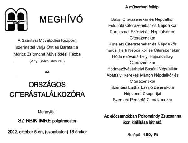 Jubileumi koncert - 10.15. kedd, 19:00 óra, Tóth József Színház A kórus tagjai és rövid története A Mesumi Női Kar közreműködésével rendezett koncert programja. Rheine-Mesum im Internet - a város honlapja (Németország, Rajna-Westfalia) Balázs Árpád - John Anderson, elõadja a Bárdos Lajos Vegyeskar, vezényel: Nagy János (3.4MB, forrás: Szentes Helyismereti Kézikönyve, 2000 - Multimédia-CD - Internet változat)