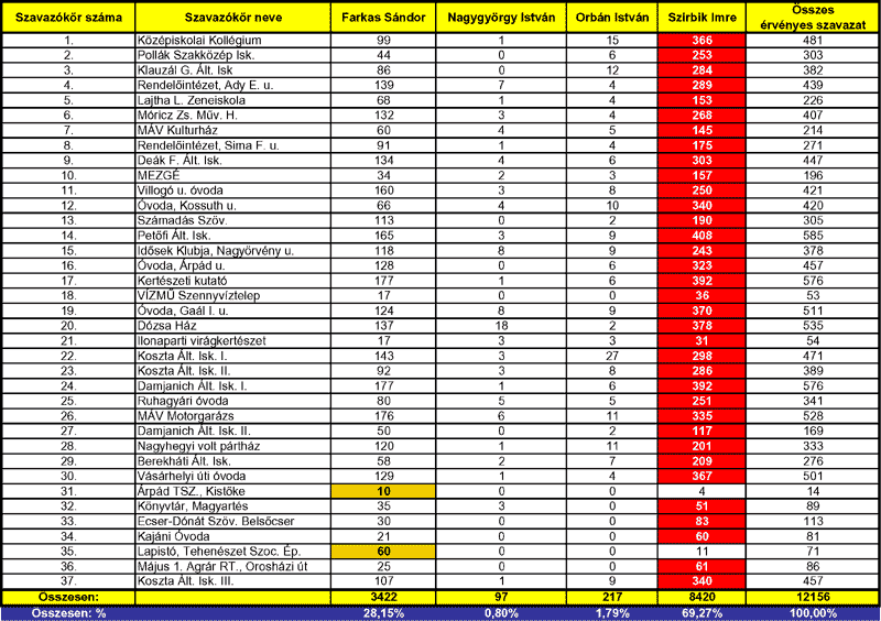 - 09.27. Pokorni zárt ajtók mögött beszélt - Délvilág - 09.24. Halmai szerint visítanak a komcsik - Balázsi Irén, Délvilág - 09.21. A kormány kisujja és karja - Balázsi Irén, Délvilág - 09.19. Farkas Sándor képviselő kérdése és bejelentése - Balázsi Irén, Délvilág - 09.16. Ingyen dolgozna Nagygyörgy István - Balázsi Irén, Délvilág - 09.13. Együtt Szentesért: elsőként kopogtattak a cédulákkal - Balázsi Irén, Délvilág - 09.12. Kolonc lett a MIÉP Szentesen? - Balázsi Irén, Délvilág - 09.09. Választási