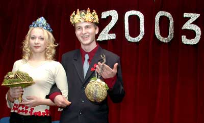 Azért sikerült megörökíteni az est bál királynőjét (Bodnár Melinda 12.A) és királyát (Józan Zoltán 13. A-D). Szentes, 2002. 12. 16. |