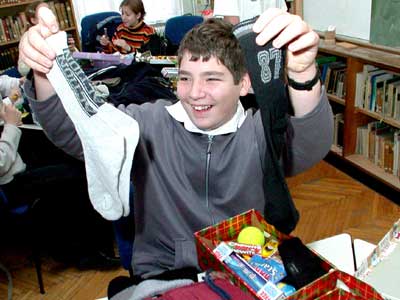 Nagyon örültek az ajándékoknak a diákok, melyekben tisztálkodási szereken kívül (fogkrém, fogkefe, szappan...) ruhaneműk (zokni, kesztyű, sál ...) játékok, rajzeszközök és rengeteg édesség. Egy-két dobozban fényképet is találtak a diákok, melyen az ajándékozók voltak láthatók, de a titkos levelek is előkerültek, amelyeket megválaszolva diákkapcsolatok alakulhatnak ki. Szentes, 2002. 12. 19.