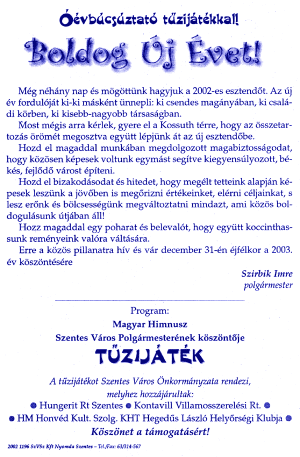 Szentes, 2002. 12. 30. |