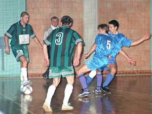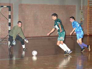 NB II.-es bajnoki teremlabdarúgó mérkőzésen találkozott az SZVSC (kék) és az Első Beton Fehér Trans (zöld) csapata a Városi Sportcsarnokban 2003. január 16-án. Az első félidőben nem bírtak egymással a csapatok (0:0), de a második félidő meghozta a döntést (1:3).