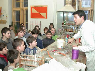 2003. január 20-án rendhagyó kémiaórát tartottak a Horváth Mihály Gimnáziumban. A kísérletező kémiaoktatást Tóth Tamás tanár úr tartotta az iskolaválasztás előtt álló fiataloknak.