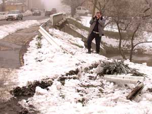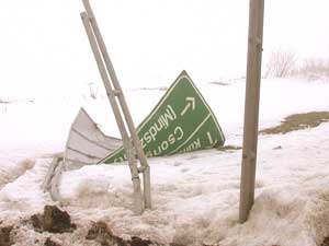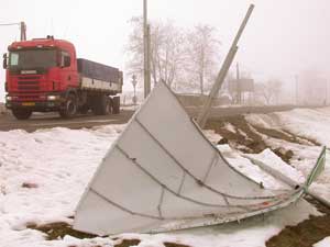 Egy másik útról leszaladás szenvedője volt az az útbaigazító tábla, amely a Vásárhelyi úton található. A várost elkerülő utat mutatná meg a közlekedőknek, de így csak a hangyák tudnak tájékozódni arról, hogy "Melyik út vezet itt ..." Csongrádra. Szentes, 2003. 01. 28. |