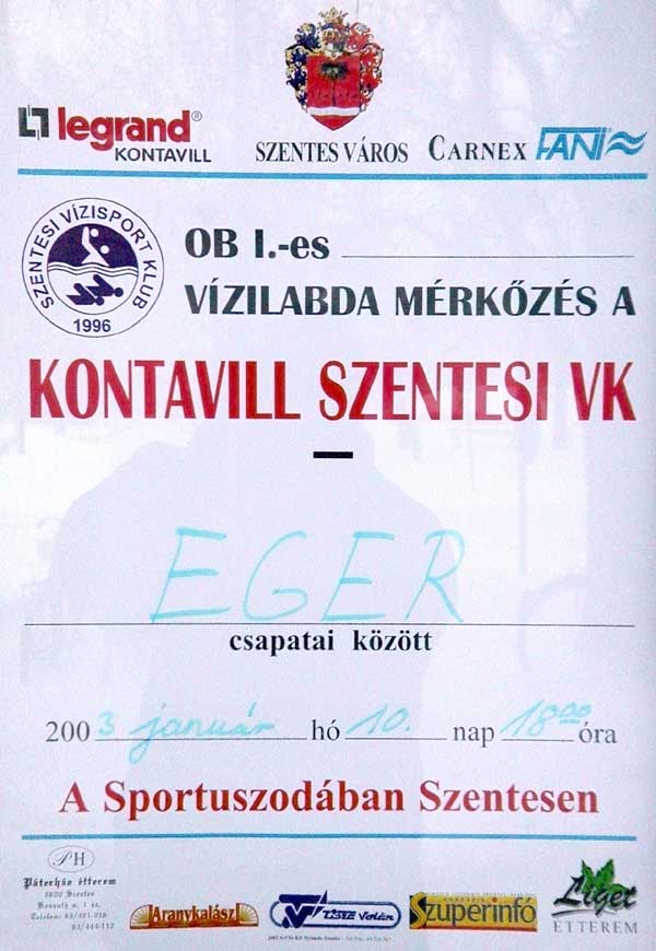10. (péntek) Szentesi VK - Eger Bajnoki vízilabda mérkőzés Ligeti Sportuszoda, 18.00