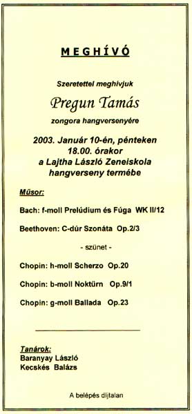 10. (péntek) Pregun Tamás zongora hangversenye Lajtha László Zeneiskola, 18.00