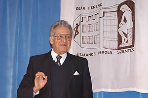 Az ünnepség zárásaként Bucsány György tartott előadást a tornaterembe az iskolák küldöttei és a 7-8. osztályosok számára Deák Ferencről és annak koráról, melyben érdekes és adomákat idézett fel.
