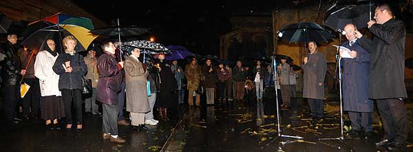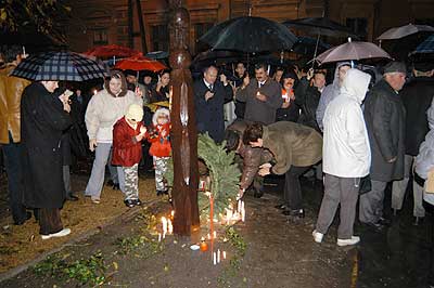 2003. október 22-én, szerdán a szakadó eső ellenére is sokan vettek részt a szentesi Református Nagytemplom melletti kopjafánál a Fidesz-Magyar Polgári Szövetség helyi csoportja és a polgári körök ügyvezetése által szervezett megemlékezésen. A külföldi útja miatt késve érkező (több mint 45 perc!) Hende Csaba országgyűlési képviselő, megköszönte a jelenlévőknek, hogy méltósággal kitartottak (de voltak, akik nem mert felháborodtak, hogy a szakadó esőben az ünnephez méltatlan körülmények között várakozzanak) és ezek után elmondta megemlékező beszédét, majd közösen megkoszorúzták a kopjafát és a szakadó eső ellenére gyertyát és mécsest gyújtottak.