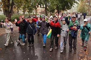 2003. október 5-én a rossz idő ellenére is sokan gyűltek össze a Széchenyi-ligeti Családsegítő Központ előtt, akik részt akarnak venni a Világ Gyalogló Nap gyaloglást népszerűsítő rendezvényén. A mozgalmat a Rio de Janeiro-i Föld-konferenciához kapcsolódva indították útjára a szervezők 1992. június 7-én. 1995-ben már a Föld összes kontinensén rendeztek gyalogló napot, Magyarország 1999-ben lépett a rendező országok sorába, 2002-ben már a világ 68 országában került megrendezésre az esemény. A rendezvénysorozat célja a gyaloglás megismertetése, megszerettetése, hogy a lehető legtöbb embert mozgósítsa a rendszeres testmozgás érdekében. Éppen ezért nem egy országos nagy rendezvény lebonyolítása a cél, hanem az, hogy minél több településen kerüljön megszervezésre a Gyalogló Nap, ezáltal növelve a rendszeres gyaloglásnak hódolók táborát.