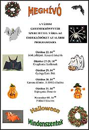 22. (szerda) Gyermekkönyvtári programok Okt. 22 - Nov. 5-ig. A meghívó kinagyítható! Helyszín: Gyermekkönyvtár