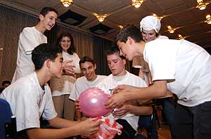 Ügyességi feladatként pedig simára kellett borotválni egy léggömböt, amit gazdagon befújtak borotvahabbal.