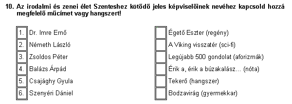 A Mozaikban most közzé tesszük a feladatsort, melynek megoldását a mozaik@szentesinfo.hu címre vissza lehet küldeni. A feladat sorszáma után az értelemszerű szavak, betűjelek vagy számok beírásával lehet válaszolni. Az első 5 helyes válasz feladóját a TEAM Számítástechnika 5- 4- 3- 2- és 1.000,- Ft-os tanfolyami utalvánnyal díjazza! A nyertesek e-mailben értesítést kapnak, a nyeremény az általuk elküldött megfejtés nyomtatásának felmutatásával vehető át. Sok sikert!