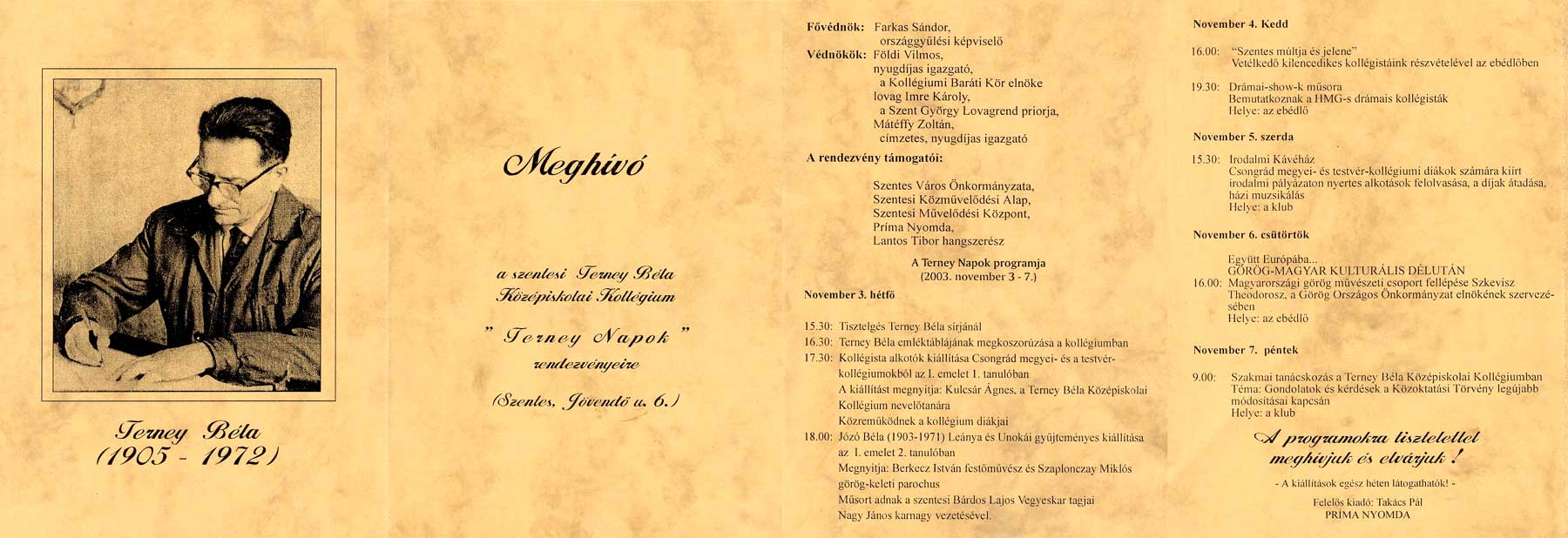 3-7. (hétfő-péntek) „Terney Napok” A meghívó kinagyítható! Helyszín: Terney Béla Középiskolai Kollégium