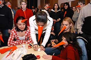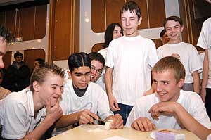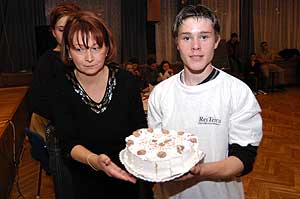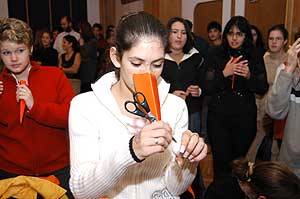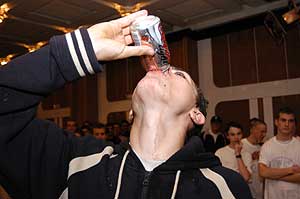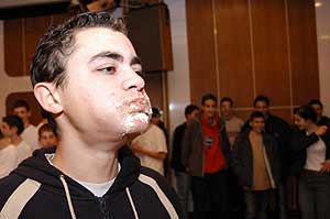 ... de a fiúk meghozták a "büntit" a közönségre, és ezzel véget is a gólyák avatása és a jól megérdemelt tortadíj előtt egy kis meglepetéssel készültek a tanárok a diákoknak.