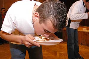Ha már az evésnél tartottunk, akkor jöjjön a csapat legéhesebb tagja, aki vállalkozik két krémes elpusztítására.
