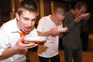 Ha még maradt éhes ember, akkor lekváros palacsintát kellett időre "enniük", amiből csak a palacsinta maradt ki.