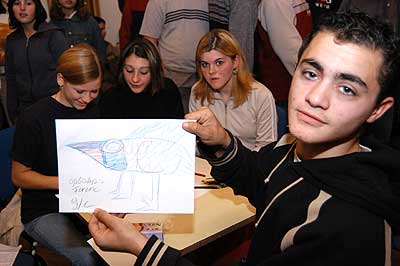 Némelyik alkotás igen absztrakt lett, de sebaj elvégre feltaláltuk a pikkelyes tarajos, hal fejű négy lábú madarat.