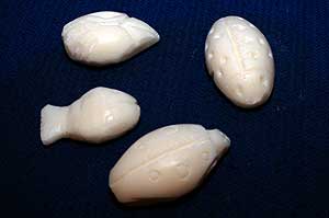 Végre elkészültek a szappan műalkotások, melyek között két katica, egy aranyhal és egy rövid csőrű gólya volt.