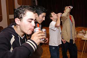 Amíg a folyosón a tanárnők pózoltak, addig a teremben a nagy ijedtségre jöhetett egy ki üdítő, amely enyhén "tőgymeleg" volt, és az első korty után úgy elkezdett habozni, hogy még az ingújból is a kóla folyt.
