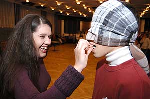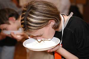 Ha már megnedvesítettük a torkunkat, akkor jöhetett egy kis lisztes feladat, amikor is öt mogyorót kellett megkeresni egy tányérnyi lisztben, és mindezt a nyelvünkkel kellett megtenni.